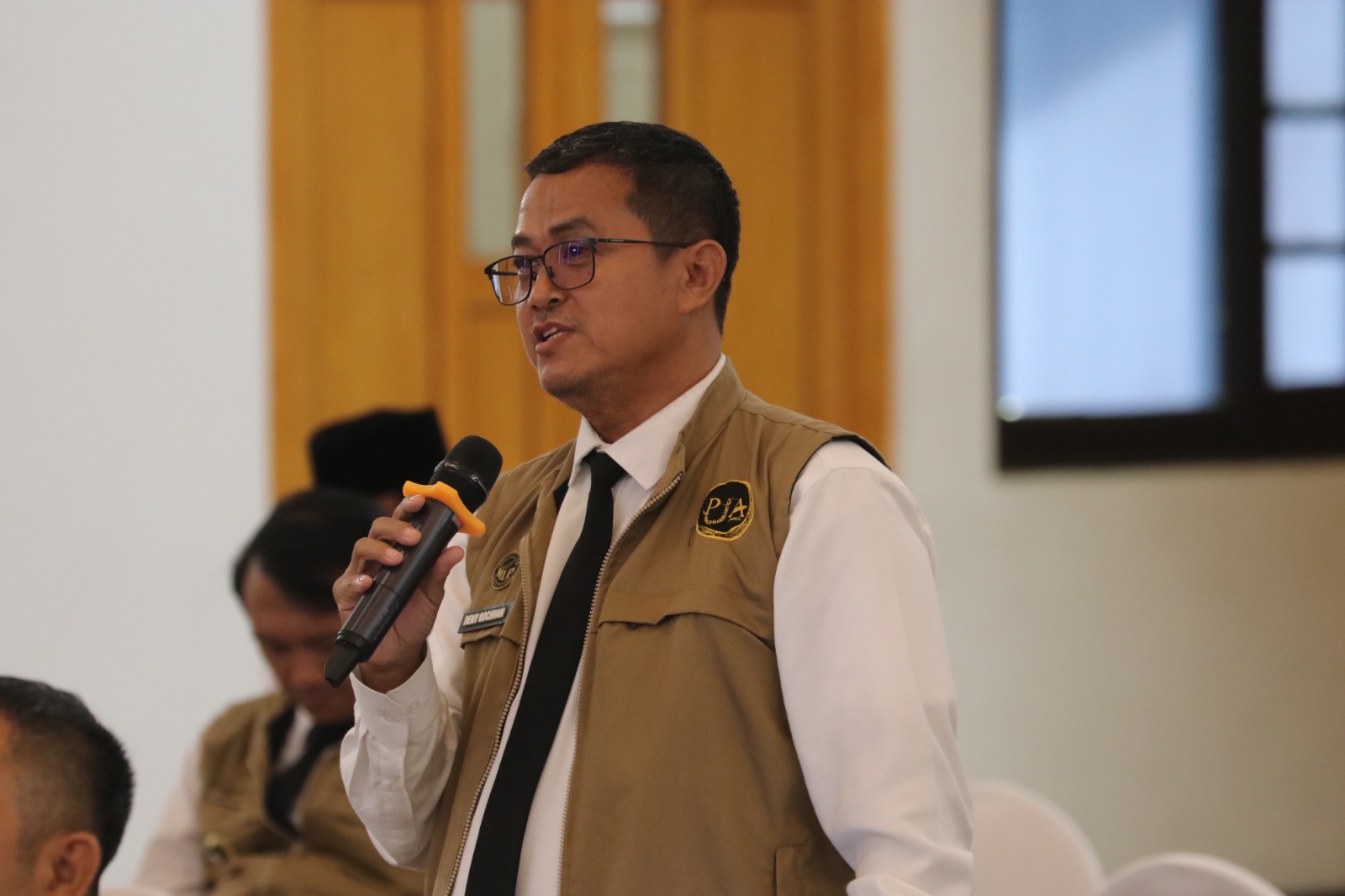 Pas Foto Berpakaian Dinas Kepala Desa/Lurah (PDU Putih) dengan Latar Belakang Merah